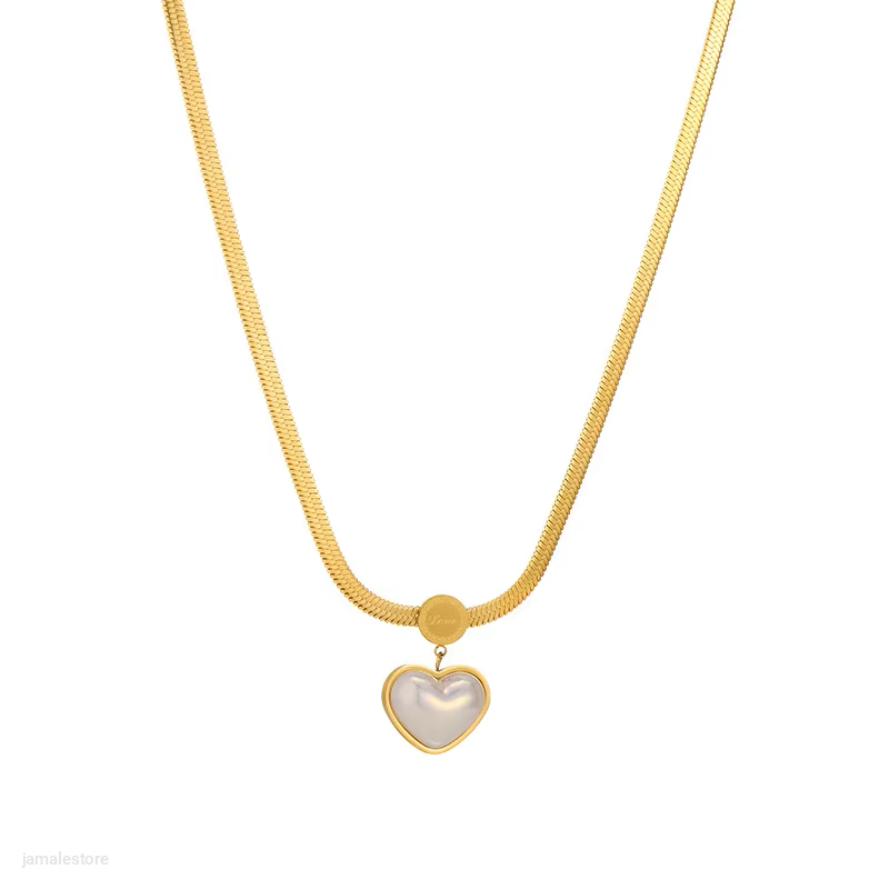 Waterproof 18K Gold Plated Stainless Steel Heart Pendant Flat Snake Chain Necklace Earrings Fine Fashion Jewelry Sets for Women